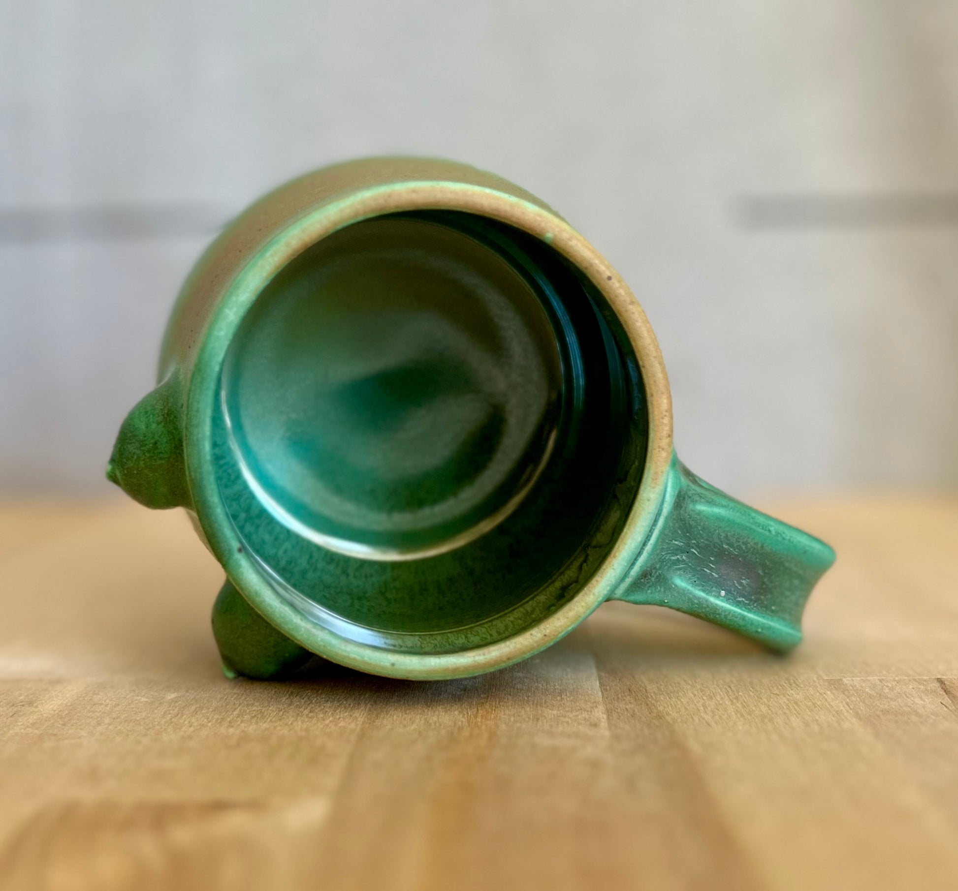 Approximately 12 oz hand sculpted goddess mug. Hand thrown in small batches in Door County, WI, each Garden Girl Stoneware piece is a unique, one-of-a-kind vessel. Fired to over 2200 degrees, these pots are food-safe, durable, and made for everyday use--dishwasher ready and adventure approved. From road trips and job sites to campfires and backyard farms, this stoneware is meant to be used. Earthy glazes and forms are inspired by antique utilitarian stoneware and the enduring beauty of nature. Dishwasher safe.
