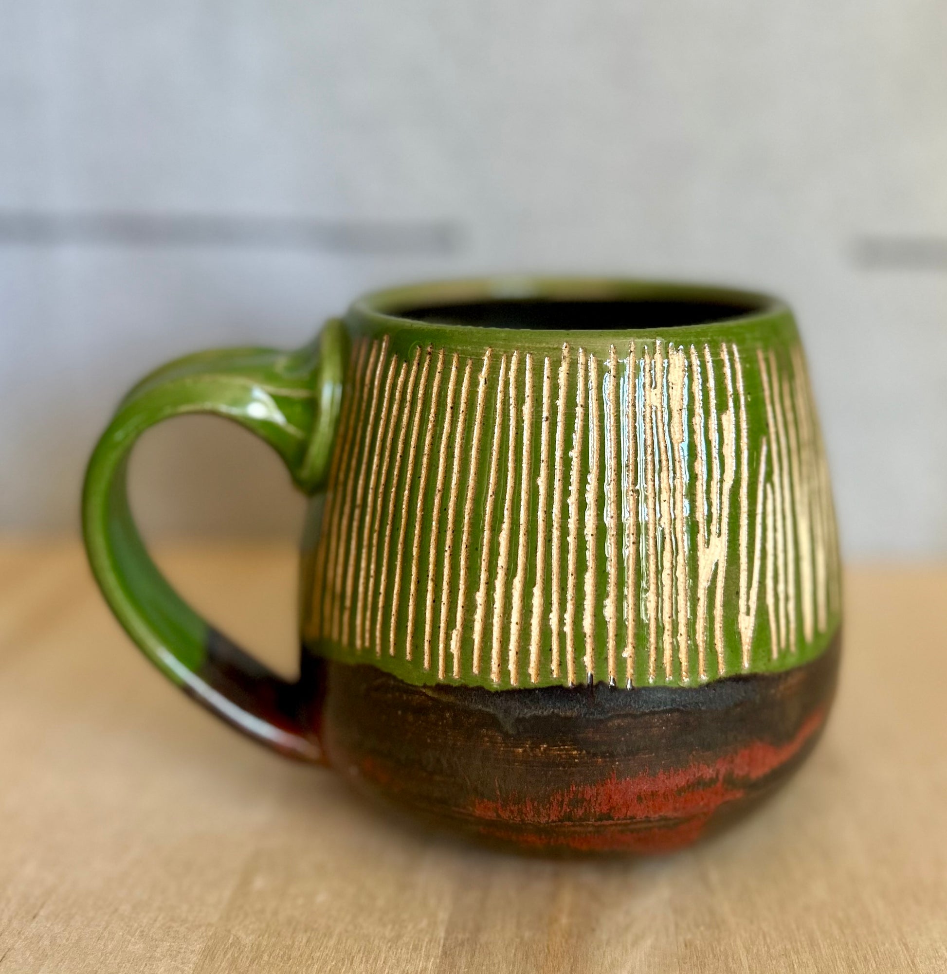 16oz hand carved mug. Hand thrown in small batches in Door County, WI, each Garden Girl Stoneware piece is a unique, one-of-a-kind vessel. Fired to over 2200 degrees, these pots are food-safe, durable, and made for everyday use--dishwasher ready and adventure approved. From road trips and job sites to campfires and backyard farms, this stoneware is meant to be used. Earthy glazes and forms are inspired by antique utilitarian stoneware and the enduring beauty of nature.