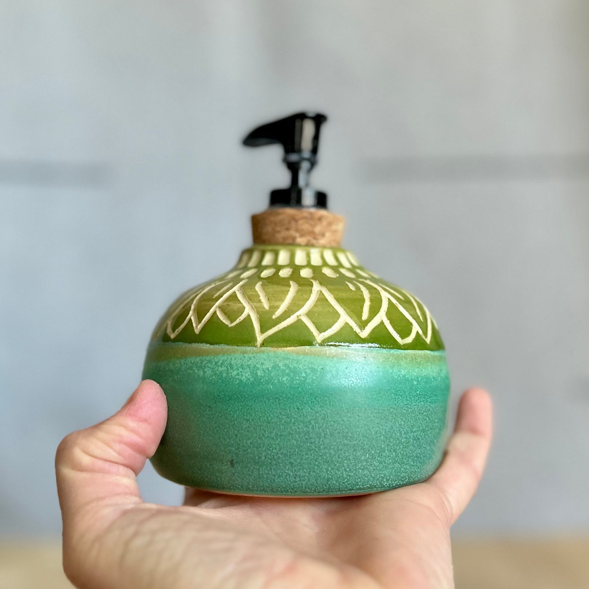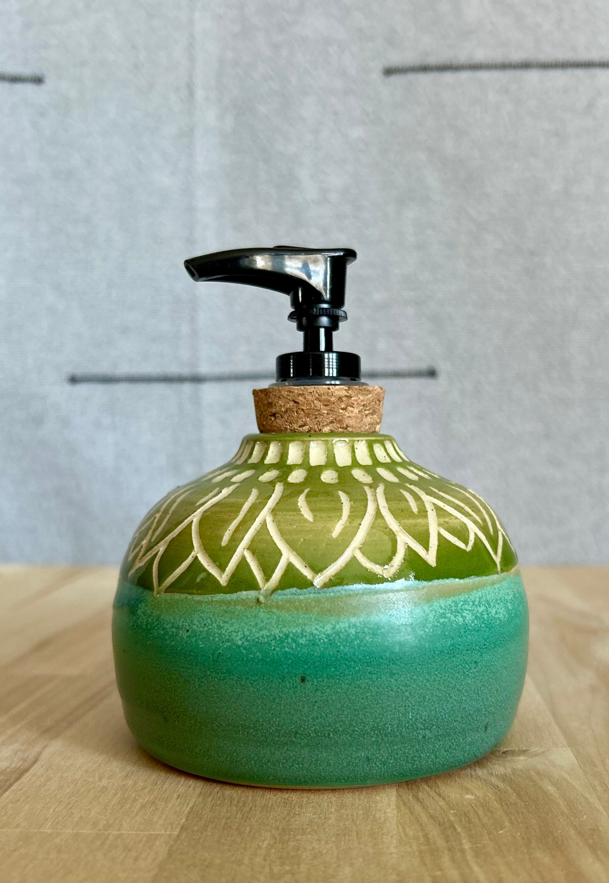 10-12 oz soap dispenser. Hand thrown in small batches in Door County, WI, each Garden Girl Stoneware piece is a unique, one-of-a-kind vessel. Fired to over 2200 degrees, these pots are food-safe, durable, and made for everyday use--dishwasher ready and adventure approved. From road trips and job sites to campfires and backyard farms, this stoneware is meant to be used. Earthy glazes and forms are inspired by antique utilitarian stoneware and the enduring beauty of nature.
