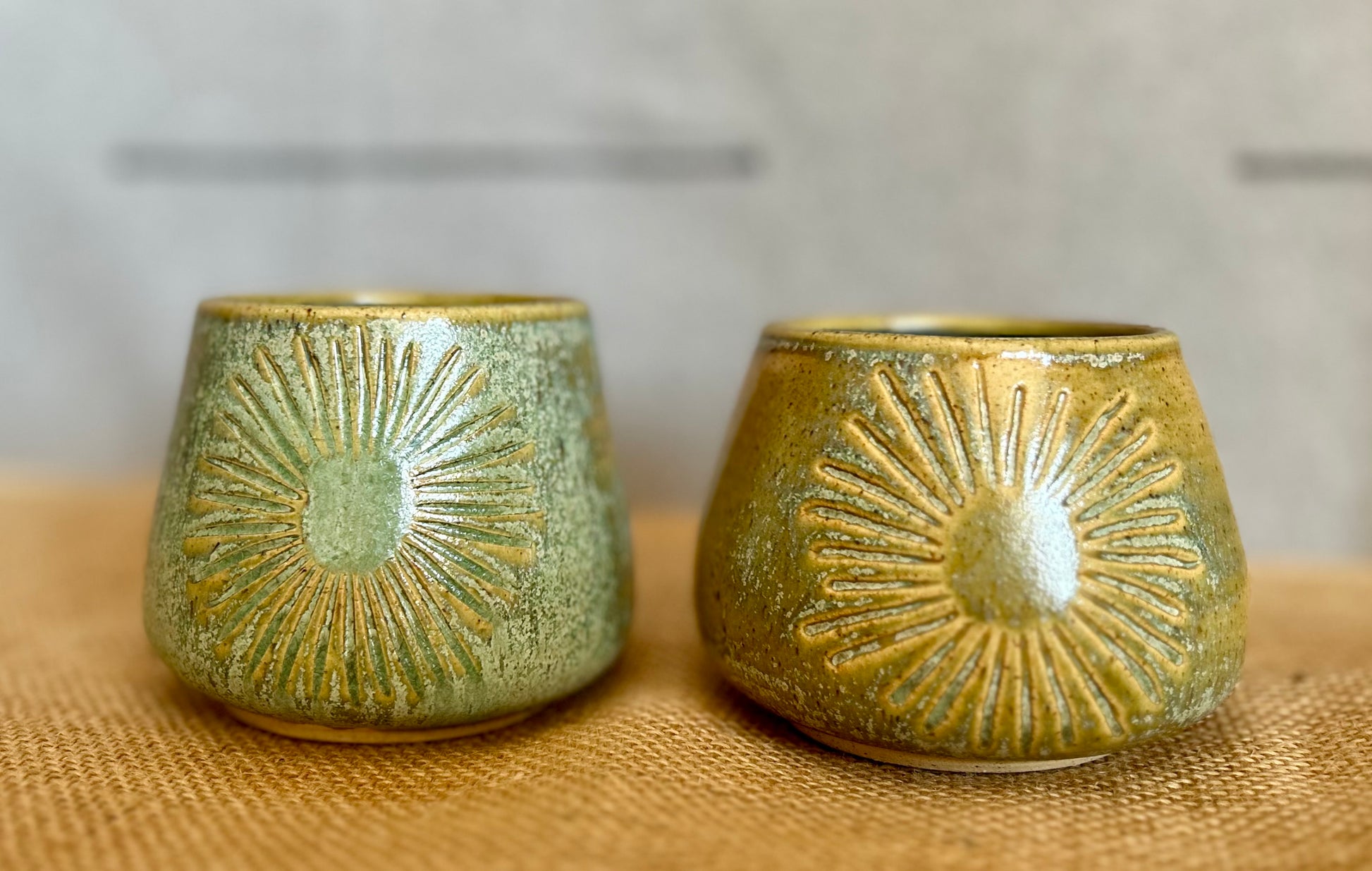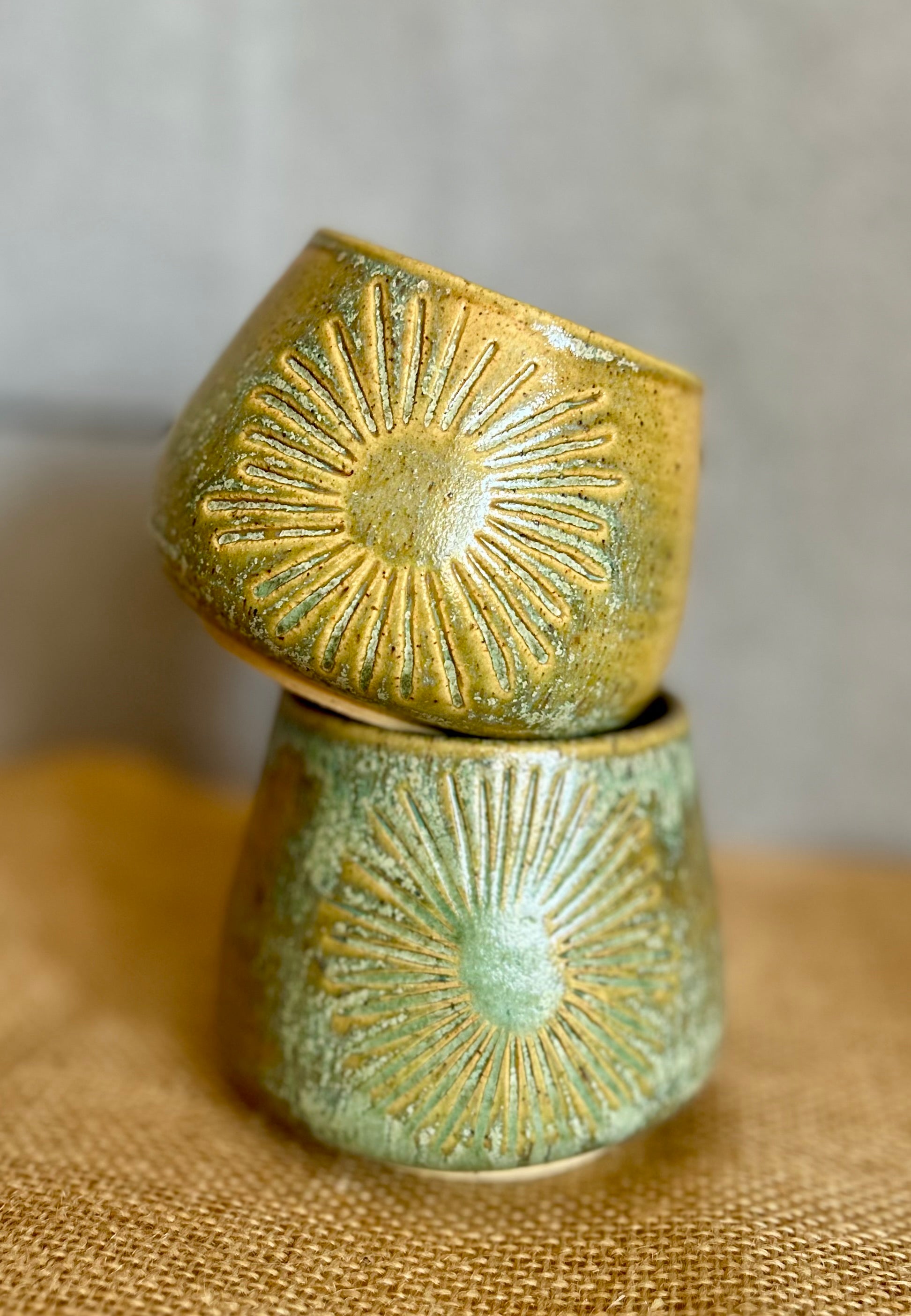 Approximately 2.75” tall by 2.75” wide. Holds 8-10 oz. Slight differences in size, shape and glaze should be expected. Hand thrown in small batches in Door County, WI, each Garden Girl Stoneware piece is a unique, one-of-a-kind vessel. Fired to over 2200 degrees, these pots are food-safe, durable, and made for everyday use--dishwasher ready and adventure approved. From road trips and job sites to campfires and backyard farms, this stoneware is meant to be used. Earthy glazes and forms are inspired by antique utilitarian stoneware and the enduring beauty of nature. Dishwasher safe.
