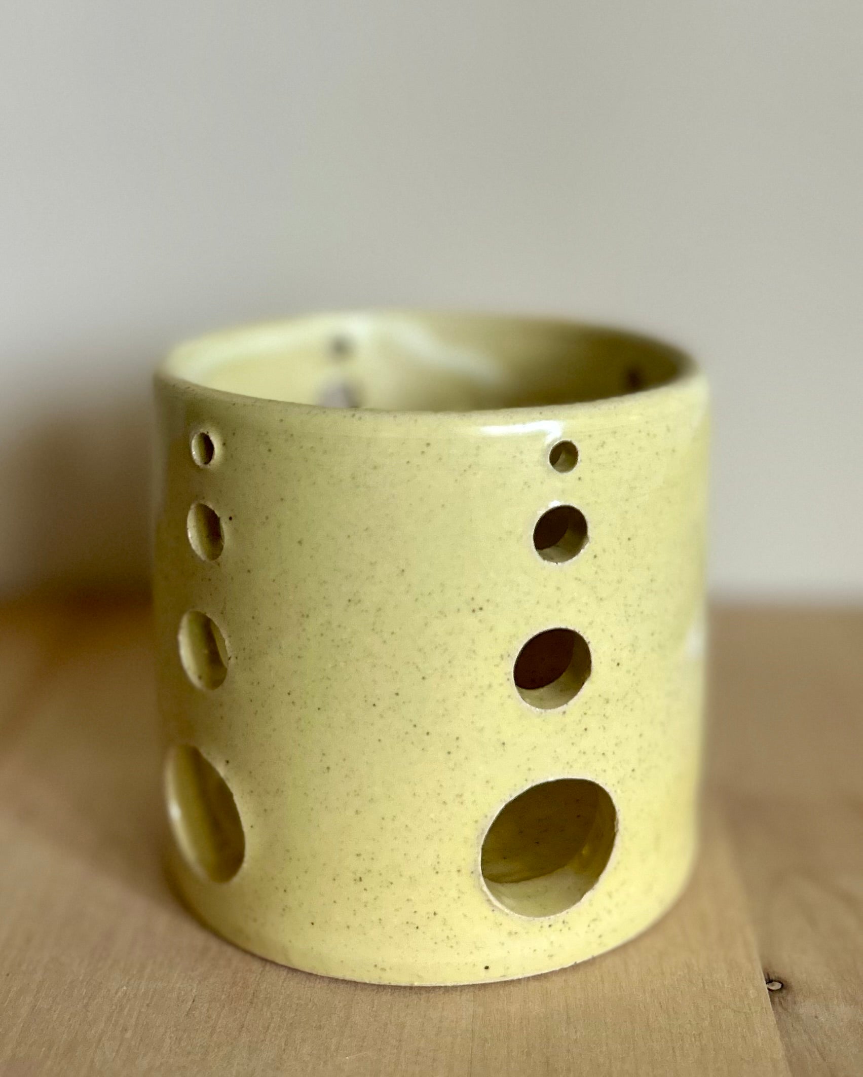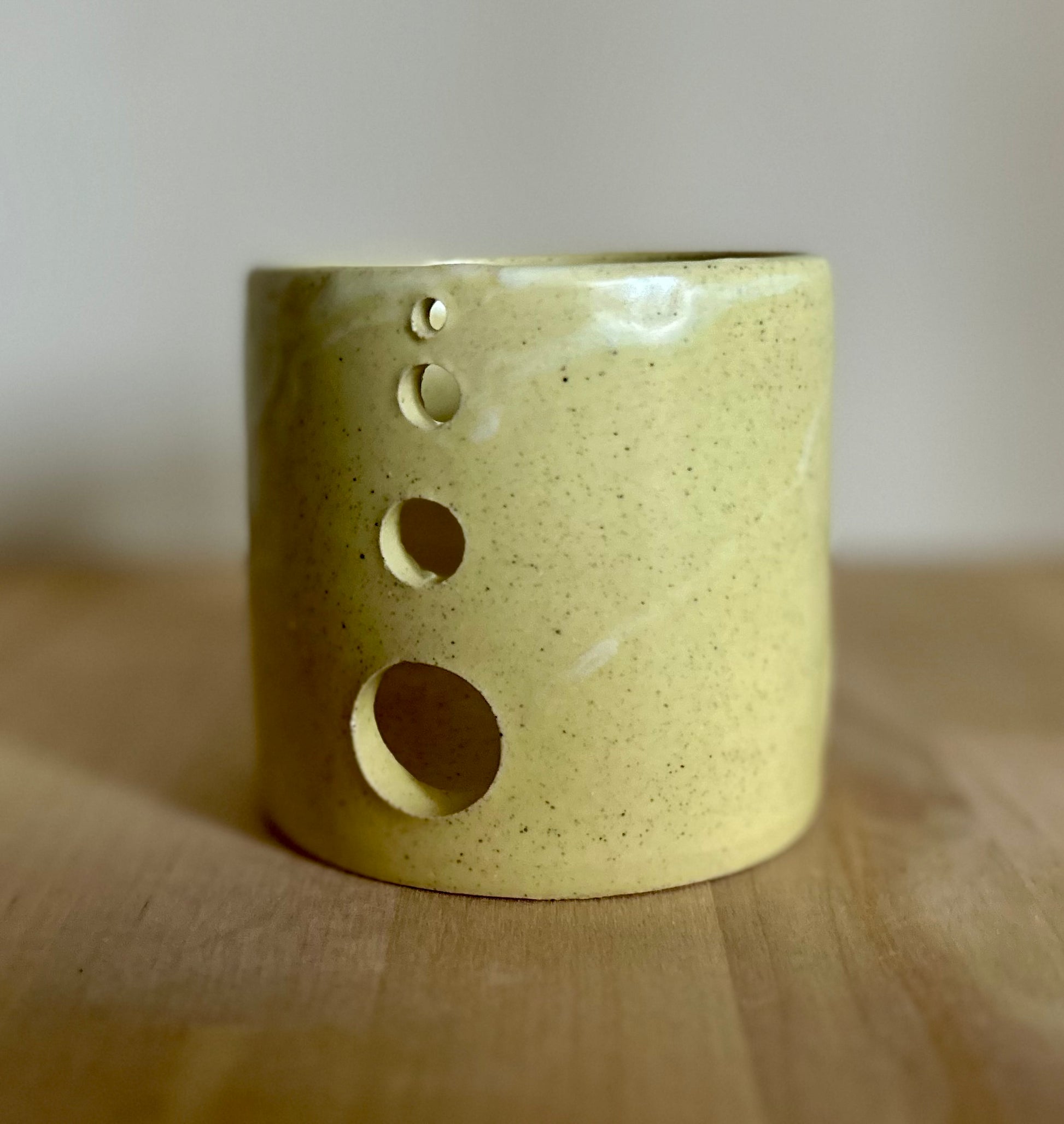 3” tall by 3.25” wide luminary candle holder. Hand thrown in small batches in Door County, WI, each Garden Girl Stoneware piece is a unique, one-of-a-kind vessel. Fired to over 2200 degrees, these pots are food-safe, durable, and made for everyday use--dishwasher ready and adventure approved. From road trips and job sites to campfires and backyard farms, this stoneware is meant to be used. Earthy glazes and forms are inspired by antique utilitarian stoneware and the enduring beauty of nature.