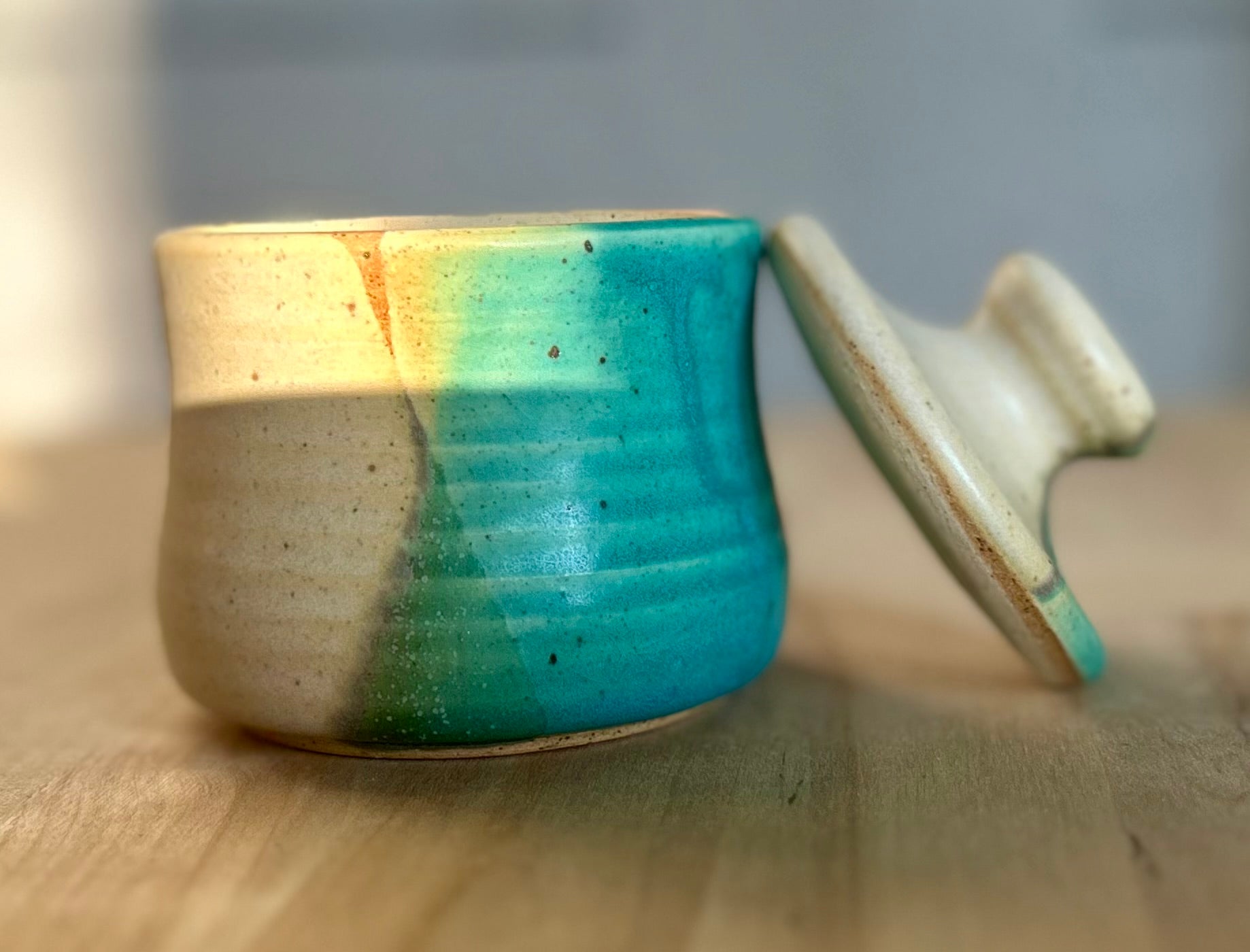 3.5” tall by 3” wide. Hand thrown in small batches in Door County, WI, each Garden Girl Stoneware piece is a unique, one-of-a-kind vessel. Fired to over 2200 degrees, these pots are food-safe, durable, and made for everyday use--dishwasher ready and adventure approved. From road trips and job sites to campfires and backyard farms, this stoneware is meant to be used. Earthy glazes and forms are inspired by antique utilitarian stoneware and the enduring beauty of nature. Dishwasher safe.
