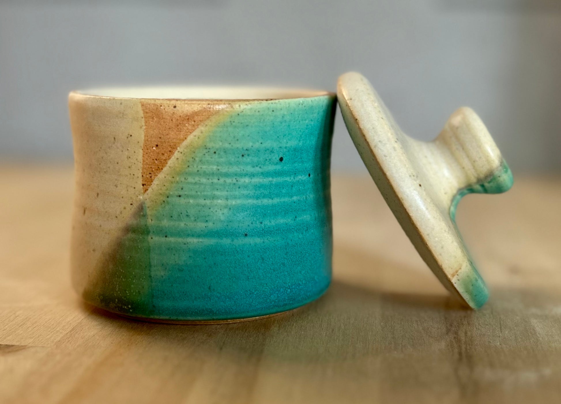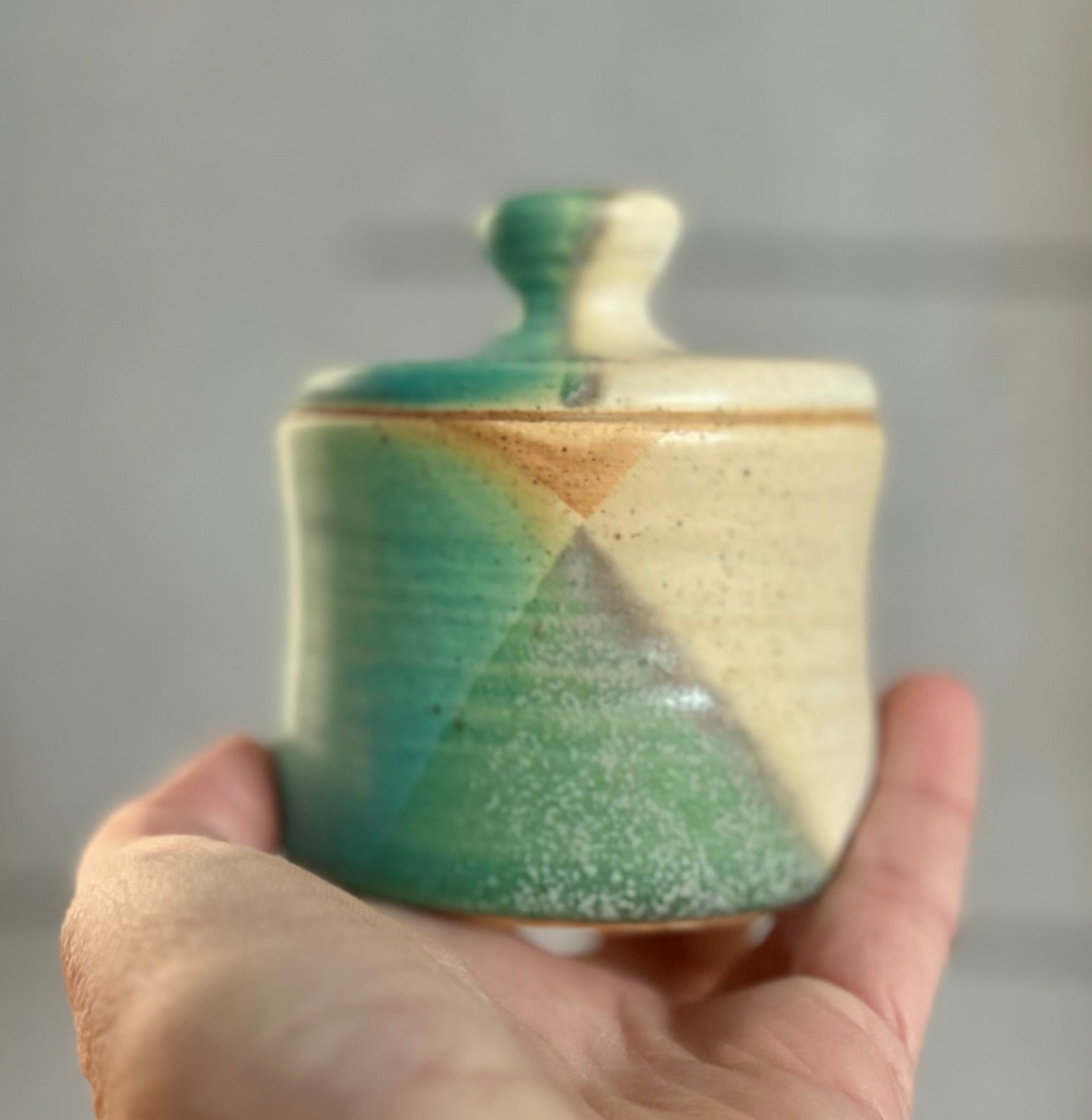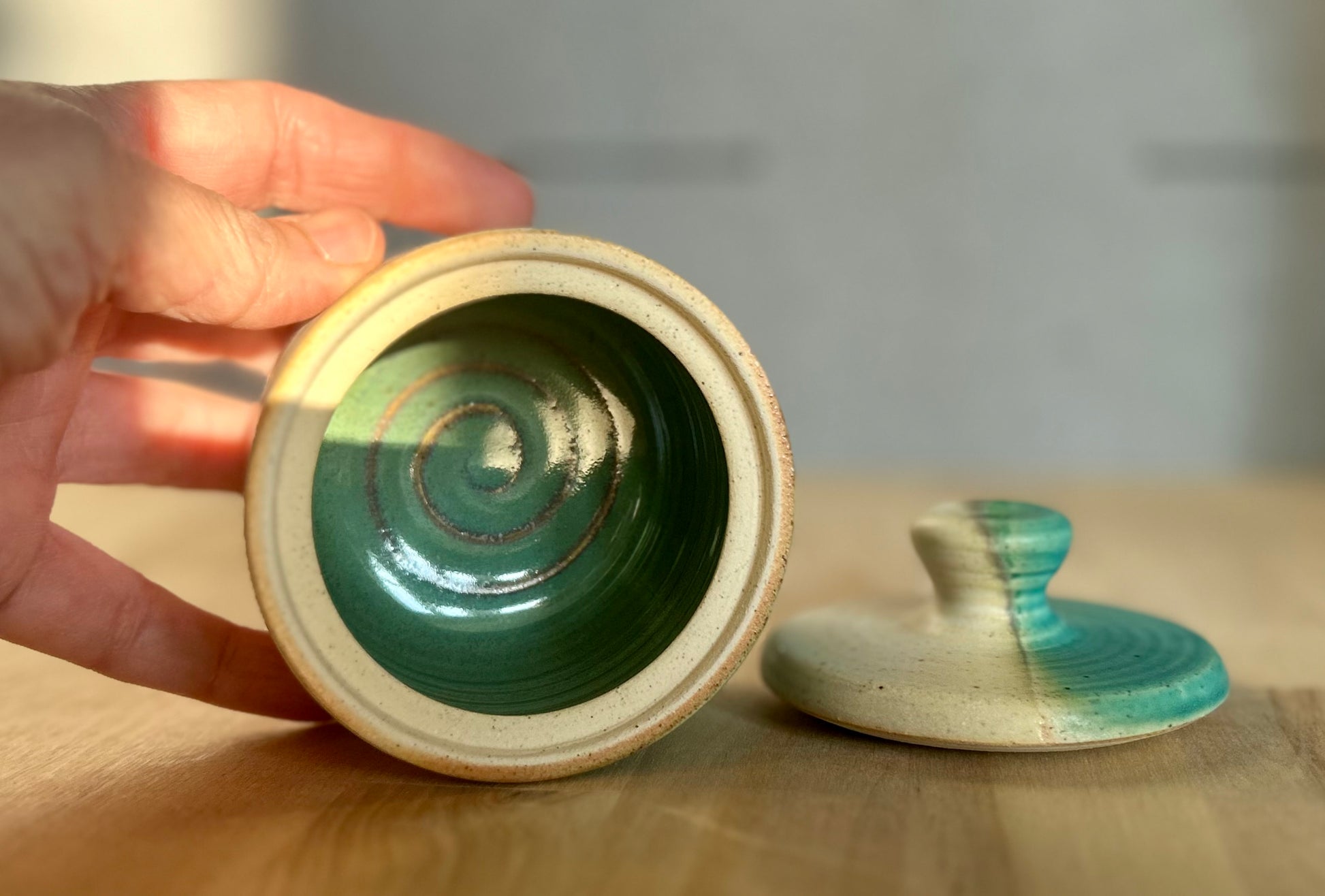 3.5” tall by 3” wide. Hand thrown in small batches in Door County, WI, each Garden Girl Stoneware piece is a unique, one-of-a-kind vessel. Fired to over 2200 degrees, these pots are food-safe, durable, and made for everyday use--dishwasher ready and adventure approved. From road trips and job sites to campfires and backyard farms, this stoneware is meant to be used. Earthy glazes and forms are inspired by antique utilitarian stoneware and the enduring beauty of nature. Dishwasher safe.