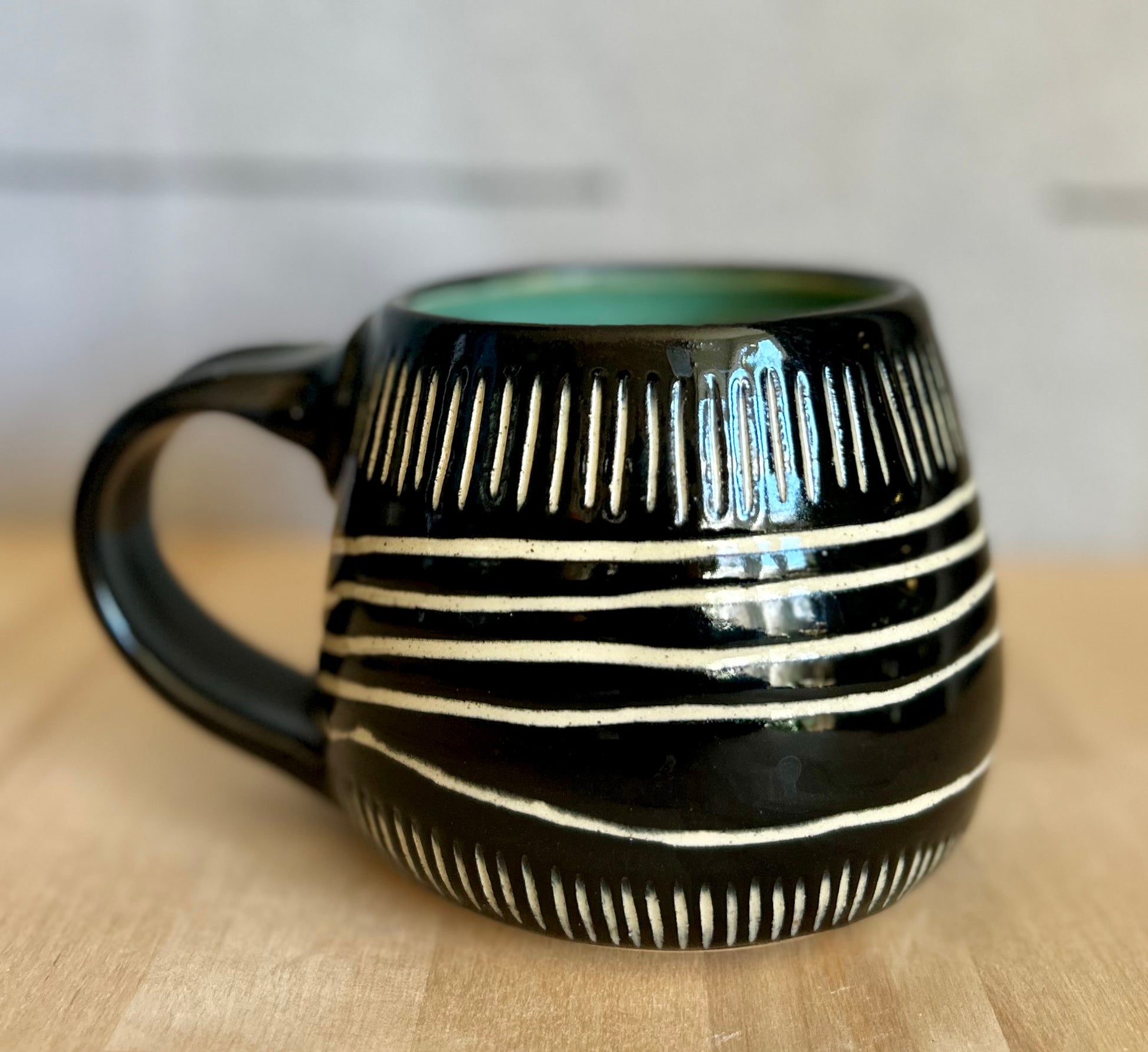 16oz hand carved mug. Hand thrown in small batches in Door County, WI, each Garden Girl Stoneware piece is a unique, one-of-a-kind vessel. Fired to over 2200 degrees, these pots are food-safe, durable, and made for everyday use--dishwasher ready and adventure approved. From road trips and job sites to campfires and backyard farms, this stoneware is meant to be used. Earthy glazes and forms are inspired by antique utilitarian stoneware and the enduring beauty of nature.
