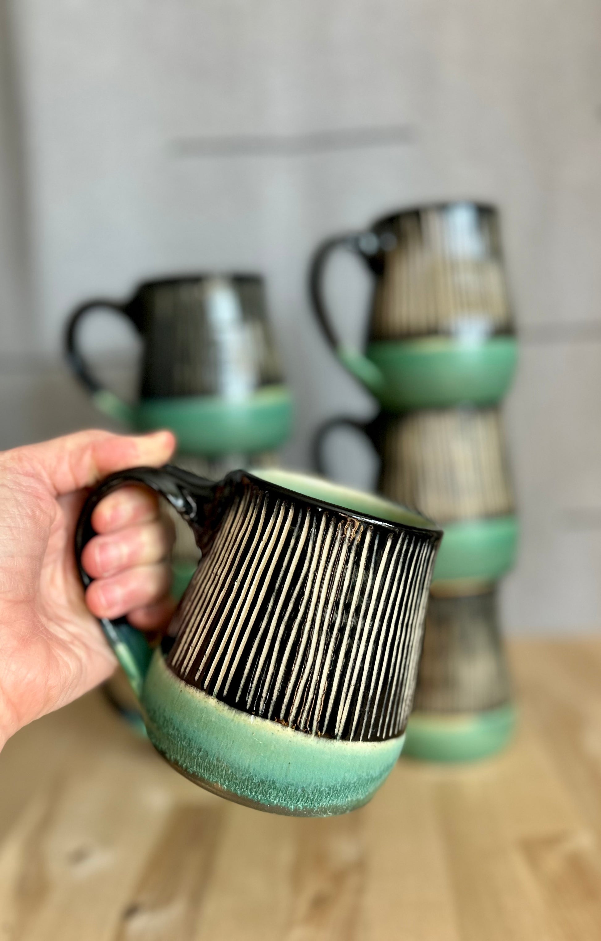 14-16oz teardrop mug. Hand thrown in small batches in Door County, WI, each Garden Girl Stoneware piece is a unique, one-of-a-kind vessel. Fired to over 2200 degrees, these pots are food-safe, durable, and made for everyday use--dishwasher ready and adventure approved. From road trips and job sites to campfires and backyard farms, this stoneware is meant to be used. Earthy glazes and forms are inspired by antique utilitarian stoneware and the enduring beauty of nature. Dishwasher safe.