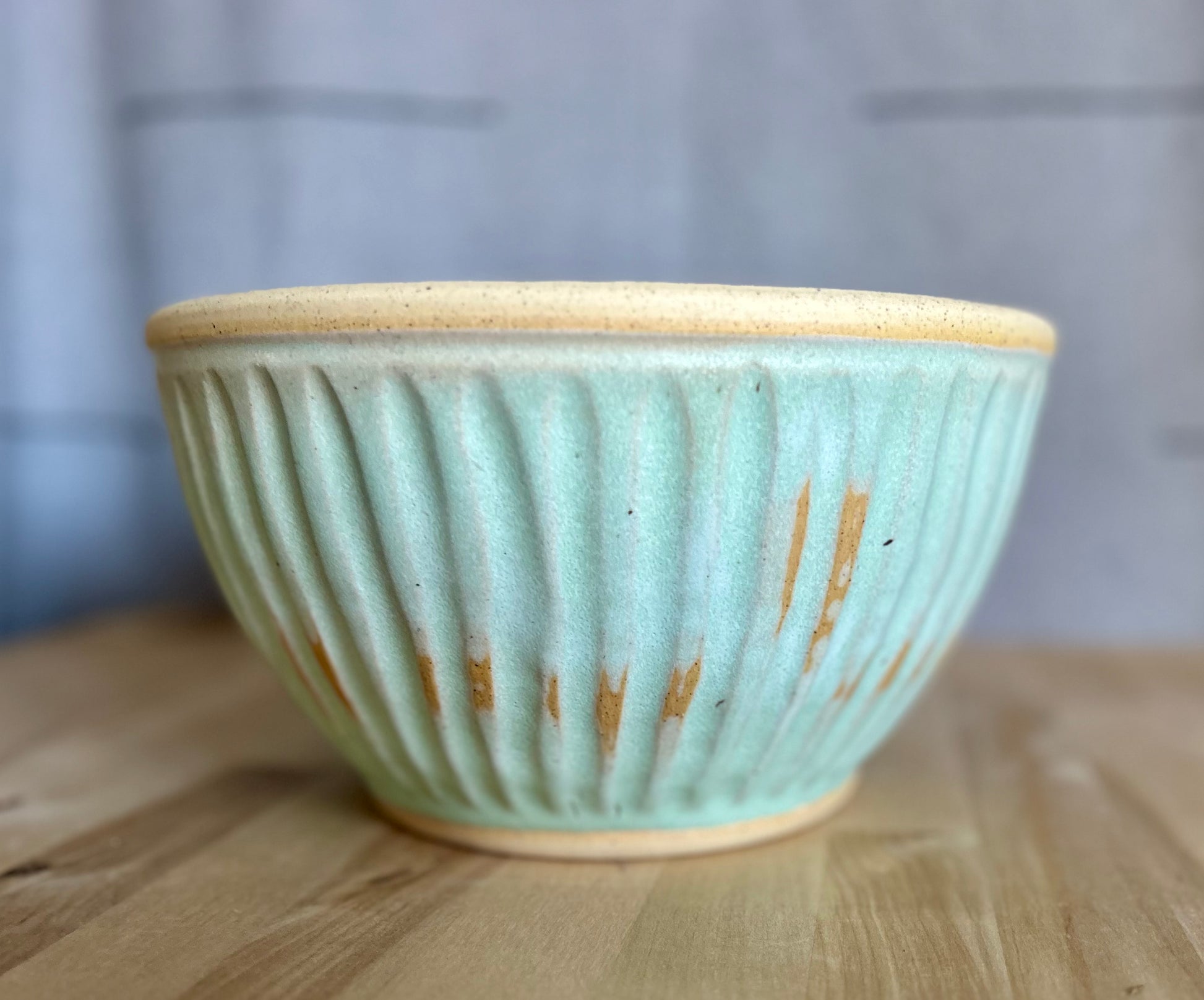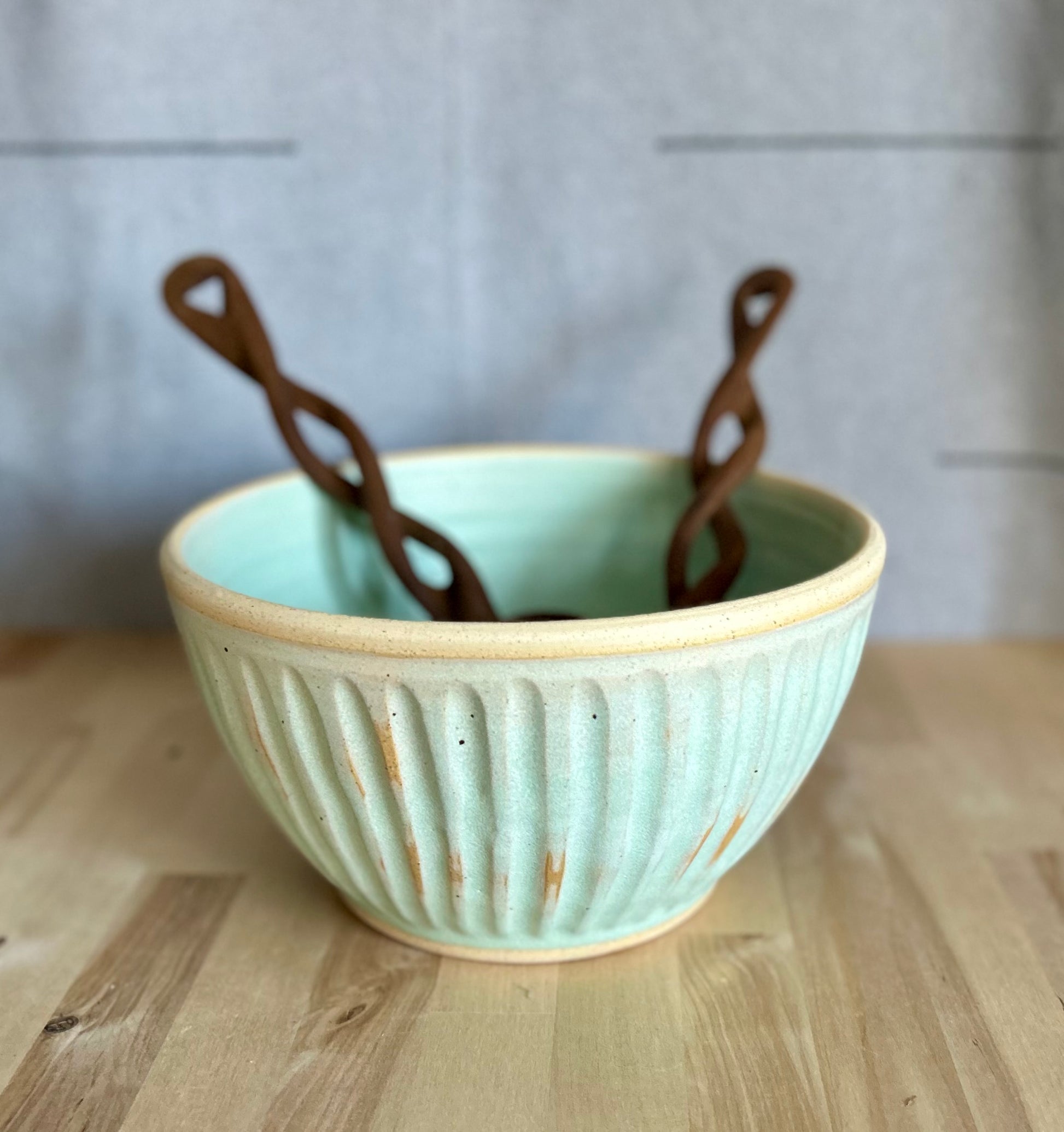 5.5” tall by 9.75” wide fluted serving bowl. Hand thrown in small batches in Door County, WI, each Garden Girl Stoneware piece is a unique, one-of-a-kind vessel. Fired to over 2200 degrees, these pots are food-safe, durable, and made for everyday use--dishwasher ready and adventure approved. From road trips and job sites to campfires and backyard farms, this stoneware is meant to be used. Earthy glazes and forms are inspired by antique utilitarian stoneware and the enduring beauty of nature.
